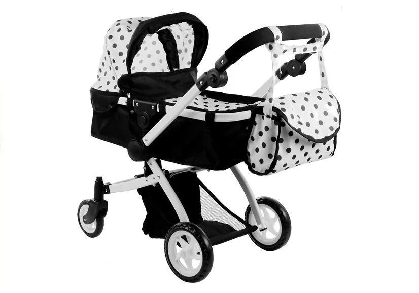 Putplasčio ir guminiai ratai + puikus dizainas leidžia lėlių vežimėlį paversti tikra akį traukiančia detalė.