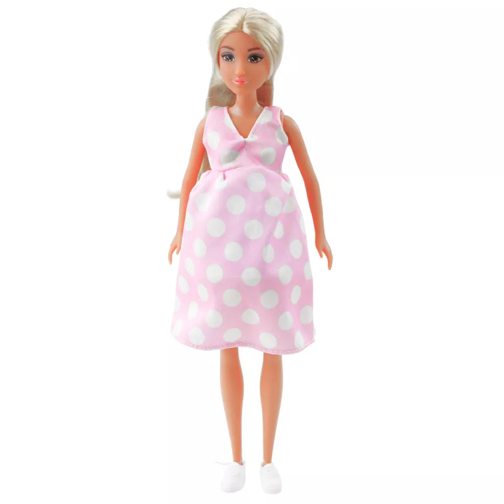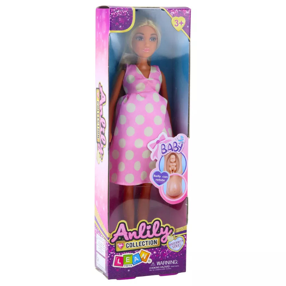 Anlily nėščia lėlė šviesiai rožinė su taškeliais suknelė