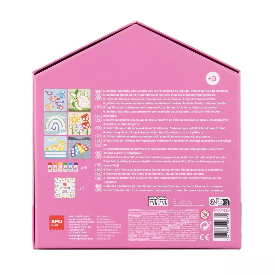 Šis rinkinys yra ne tik smagi pramoga, bet ir svarbi lavinamoji priemonė. Tai lengva ir stimuliuojanti technika, padedanti vaikams lavinti esminius įgūdžius: pasiruošimo rašymui motoriką, akių-rankų koordinaciją ir meninę saviraišką. Rinkinyje rasite 6 linksmus, iliustruotus lapus, kuriuos vaikas turi užpildyti spalvotais taškais, ir 6 specialius žymeklius.