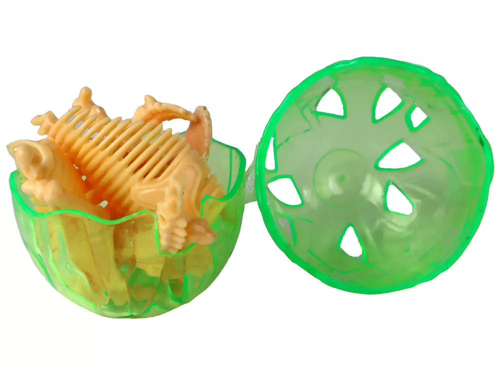 Kviečiame į įdomią mūsų dinozaurų kiaušinių pasaulį! Kiekvienas kiaušinis, kurio matmenys yra 9 cm x 6 cm x 6 cm, pagamintas iš aukštos kokybės skaidraus plastiko, leidžiančio stebėti turinį. Viduje yra atsitiktinis plastikinės geltono dinozauro kaukolės modelis, kurio surinkimas suteikia papildomų pramogų. Tai žaislas, kuris lavina motorinius įgūdžius, judesių koordinaciją ir dėmesį.