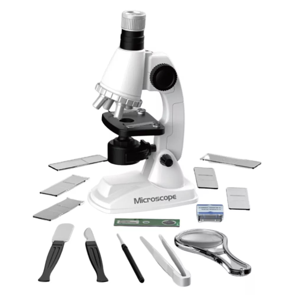 Mikroskopas yra kompaktiškų matmenų, todėl lengvai telpa kuprinėje, stalčiuje ar ant stalo. Jį maitina 5 AA baterijos (nepridedamos), todėl jį galite naudoti nepriklausomai nuo elektros prieigos – jis idealiai tinka tiek namuose, tiek kelionių metu. Rinkinyje yra daug priedų, tokių kaip: stikleliai, pipetė, pincetas, didinamasis stiklas ir laboratoriniai indai, kurie leidžia jums patiems paruošti ir ištirti mėginius – kaip ir tikroje laboratorijoje.