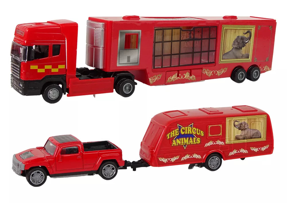 Cirko gyvūnų transporto priemonių rinkinys yra puiki dovanų idėja. Jūsų vaikas ras ir didelį sunkvežimį gyvūnams vežti, ir pikapą su priekaba. Rinkinyje taip pat yra dvi laukinės katės - liūtas ir tigras. Žaisdami su mūsų rinkiniu įkvėpsite savo vaiko kūrybiškumą ir smagiai praleisite valandų valandas. Vilkikas ir pikapas pagaminti iš metalo, todėl garantuojamas rinkinio tvirtumas ir kokybė.