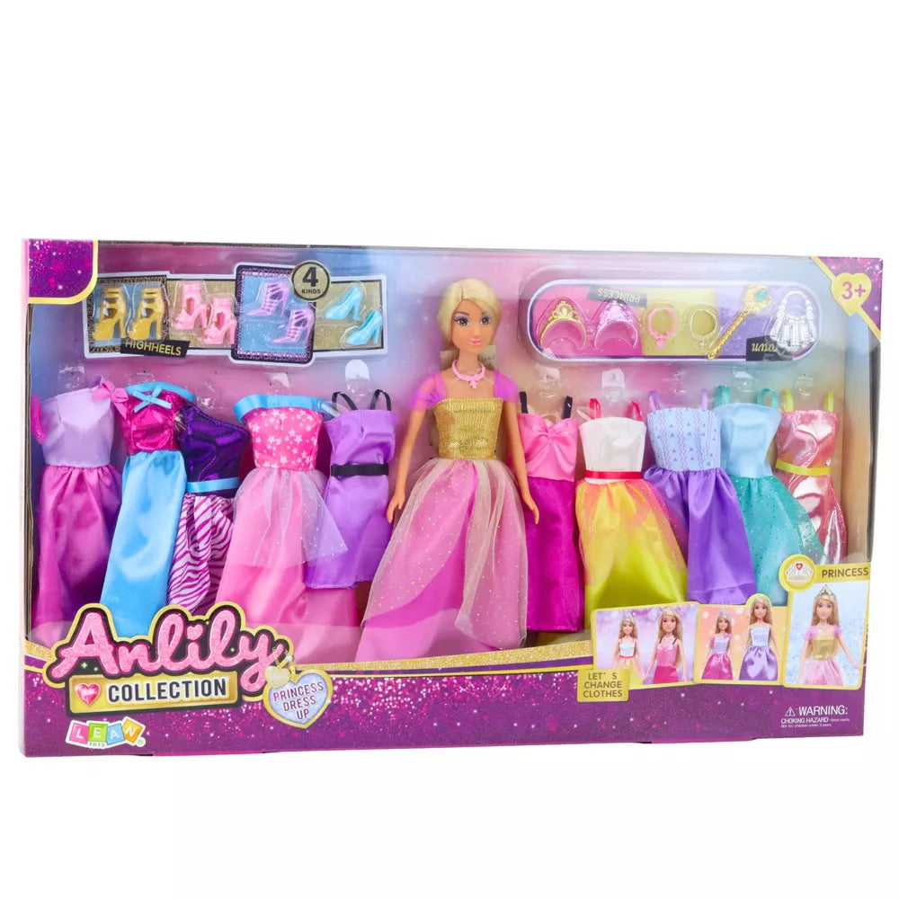 Lėlė „Anlily“ su pasakų suknelių ir aksesuarų kolekcija yra kiekvienos mergaitės, kuri mėgsta madą, spalvas ir kūrybinius žaidimus, svajonė. Rinkinį sudaro graži 30 cm aukščio lėlė, aprengta elegantiška baline suknele, taip pat 10 papildomų aprangų, kurios leis kiekvieną dieną susikurti unikalius įvaizdžius. Kiekviena suknelė skiriasi spalva ir stiliumi – įskaitant balines sukneles, klasikines, pasakų ir kasdienes sukneles, todėl galima žaisti įvairiai ir kūrybiškai.