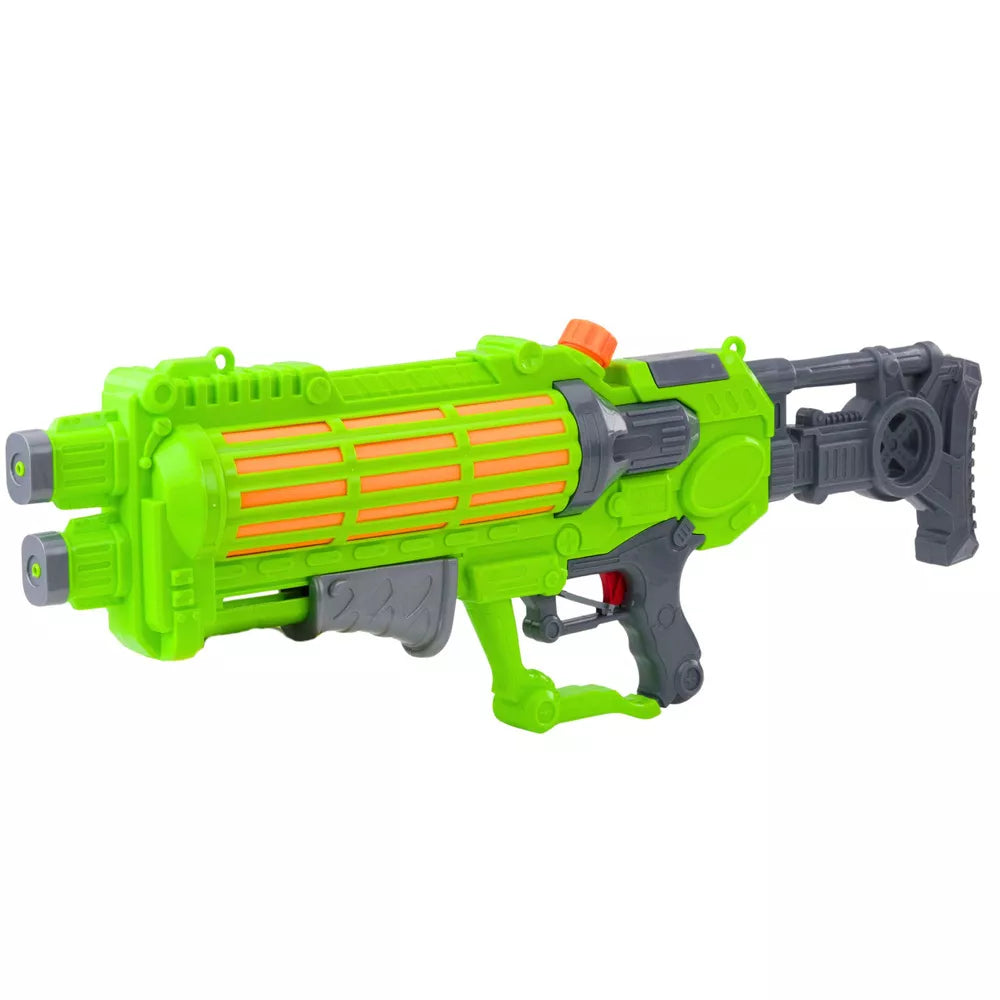 Tipas: vandens pistoletasSpalva: žalia su oranžiniais ir pilkais elementaisAntgalių skaičius: 2Nuotolis: priklauso nuo siurbimo jėgosMedžiaga: plastikasMatmenys: 74 × 26 × 9,5 cmTalpa: 1250 mlRINKINIO TURINYS: