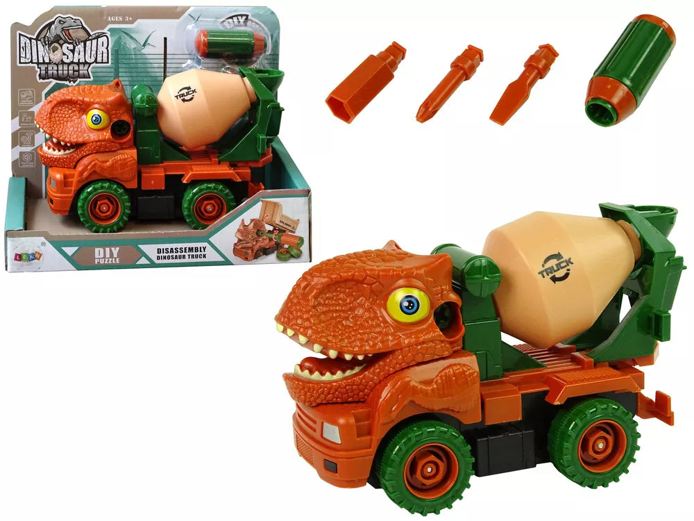 Betono mašina Dinosaurus, kurią galima surinkti, oranžinės spalvos priedai