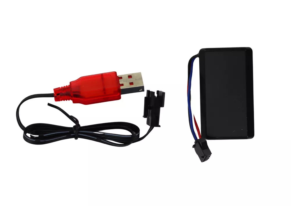 Karabiną maitina 7.4V 500mAh baterija, kuri yra komplekto dalis. Pridedama įkroviklis baterijai.