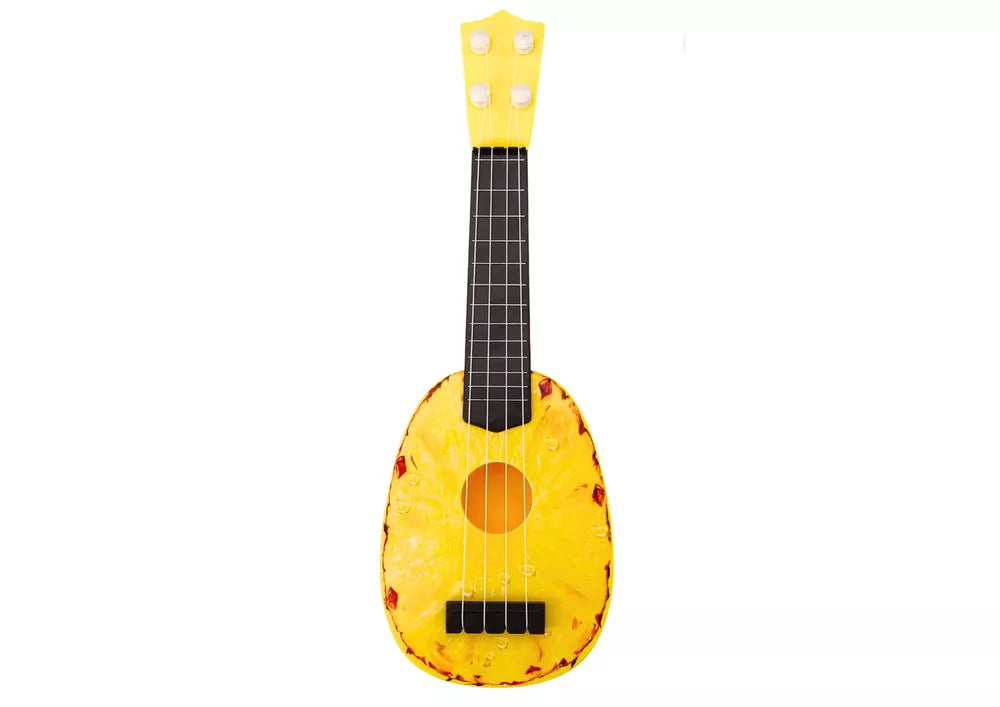 Ukulelė vaikams Mini gitara 4 stygos Ananaso motyvas, geltona 15″