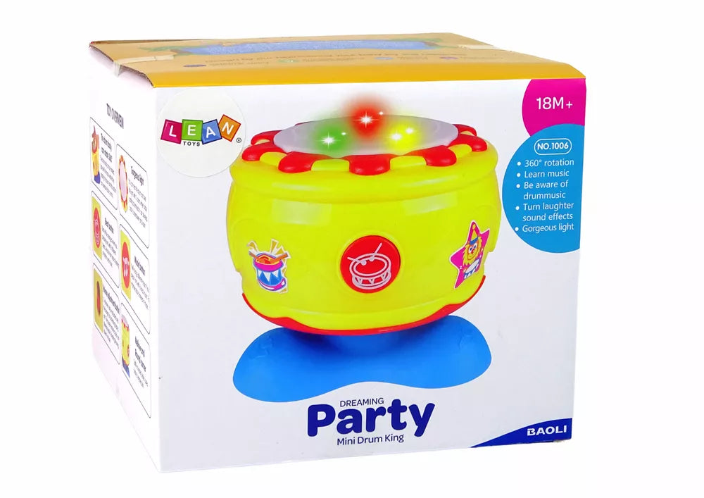 Šis interaktyvus muzikinis būgnas suteiks smagumo visiems mažiems vaikams, kurie jau domisi muzika ir maloniais garsais. Žaisdami su šiuo produktu, jie patys nusprendžia, ką nori išgirsti. Būgno nublokštamaisiais garsais mažas muzikantas bus nukeliavęs į afrikietiškų melodijų pasaulį, sklindantį iš šių garsio instrumentų. Muzikinis žaislas ne tik skatina mažylį žaisti, bet taip pat teigiamai veikia vaiko vystymąsi ir auklėjimą. Žaidimas su būgnu skatina vaiką būti aktyviam, veikia daugelį pojūčių ir veikia vaiko emocijas.