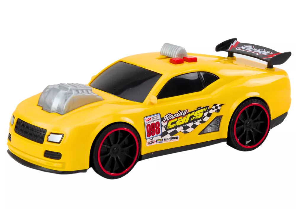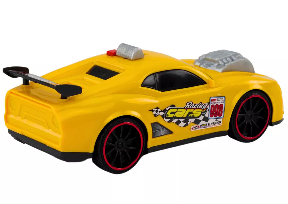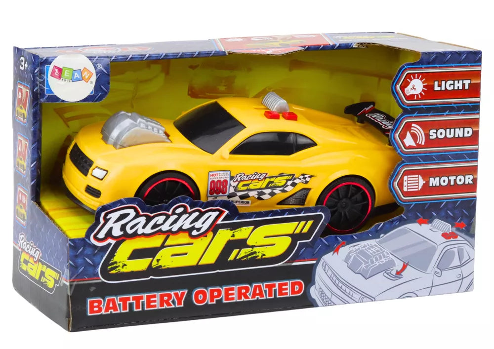 Lenktyninė mašina su šviesomis, garso efektai ir atidaromu varikliu, geltona