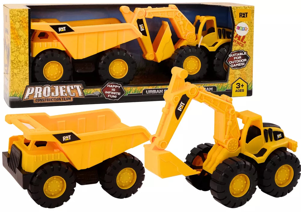 Statybinių mašinų rinkinys, ekskavatorius-savivartis. Šis smėlio žaislų rinkinys yra tikras lobis bet kuriam mažajam statybininkui! Rinkinį sudaro geltonas ekskavatorius ir savivartis, suteiksiantys valandų valandas begalinių pramogų tiek viduje, tiek lauke. Ekskavatorius su judinamu kaušu yra idealus įrankis smėlio konstrukcijoms kasti, perkelti ir formuoti. Dėl tiksliai suprojektuotos konstrukcijos kiekvienas judesys yra sklandus ir stabilus, todėl statybos darbai atliekami lengvai ir efektyviai.