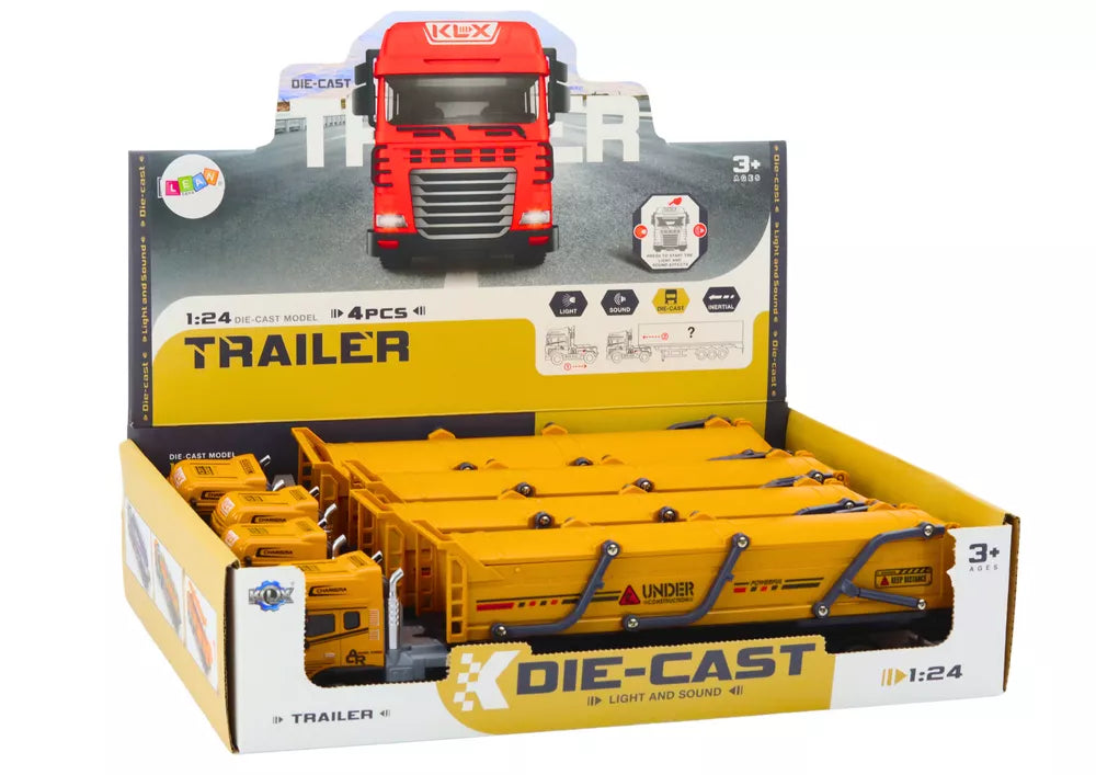Sunkvežimis su priekaba TIR Transporto priemonė 1:24 Garsiniai žibintai Geltonos spalvos