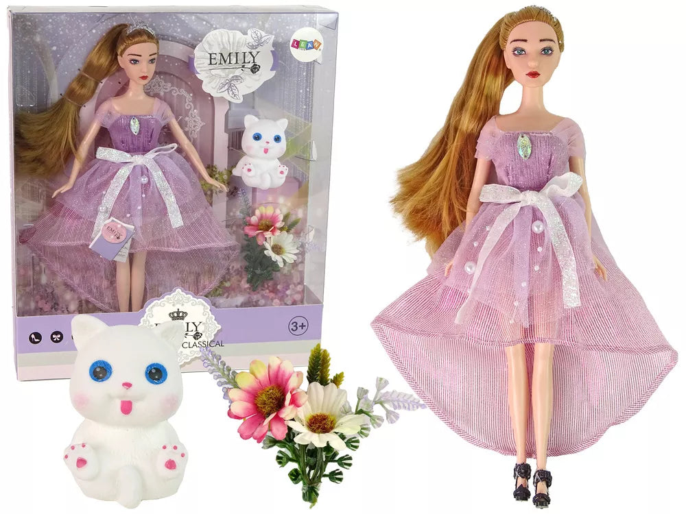 Pristatome žaviąją lėlę Emiliją su ilgais šviesiais plaukais. Ši graži lėlė apsirengusi ilga suknele, kuri žavi rožiniais blizgančiais detalėmis, puošniomis perlų ir kaspininių aplikacijomis. Ant galvos ji turi elegantišką tiarą, o ant kojų dėvi juodus, stilingus batus su švelniomis rožėmis, o tai dar labiau priduria jos žavesio.