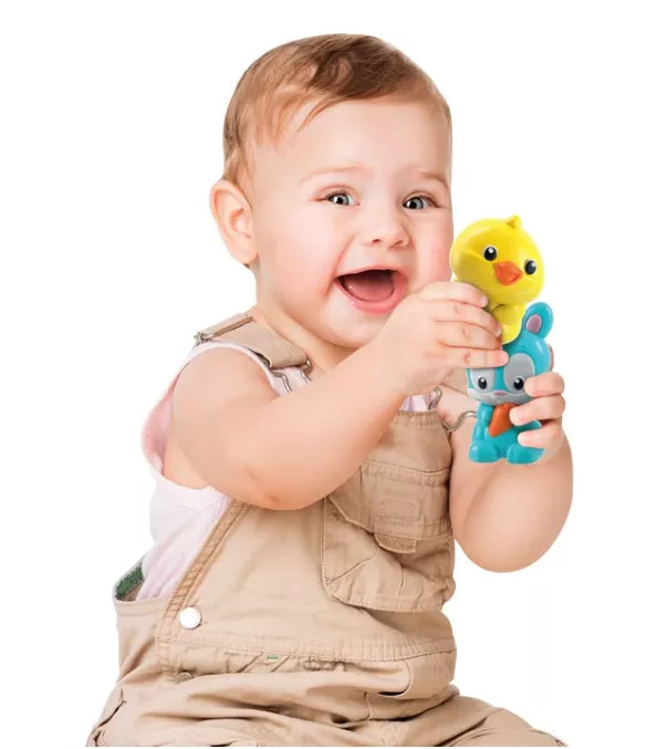 Traukinys lekia per patrauklią trasą, kuri yra žaidimo rinkinys, įsikūręs ūkininkų sodybos pasaulyje. Palietus traukinio kaminą, traukinys leidžiasi į nuostabią nuotykį, kurį lydi jo draugai: šunytis, karvytė, triušiukas ir ančiukas. Kai traukinys pravažiuoja, ūkis atgyja: kranų rankos kyla aukštyn, malūnas pradeda suktis, o gaidys ir ančiukas skleidžia savo būdingus garsus. Kai užsidaro geltonos vartai, ančiukas pradeda „plaukti“ tvenkinyje, o karuselė ima suktis. Tai tikras linksmybės. Stimuliuoja rankinius įgūdžius ir rankų bei akių koordinaciją, taip pat skatina vaizduotę.