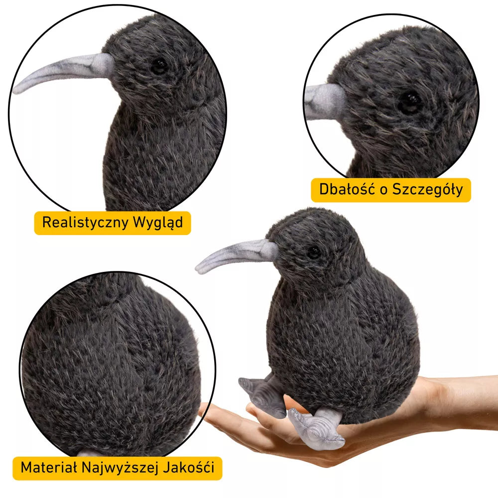 Pliušinis 21 cm aukščiokivių talismanas, tiksliai atkartojantis šiam unikaliam paukščiui būdingą juodą plunksną. Pagamintas iš itin minkštos ir malonios liesti medžiagos, jis suteikia išskirtinį komfortą glamonėjant. Kruopščiai sukurtos detalės suteikia jam autentišką išvaizdą, todėl jis yra puikus žaidimų draugas ir vaiko kambario puošmena.