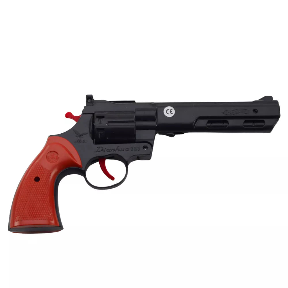 SPECIFIKACIJA:Žaislo tipas: Revolveris su patrionaisNaudojimas: Galimybė naudoti su patronais arba be jųMechanizmas: Sukasi būgninis magdezinąSpalva: Juoda su raudonais elementaisMedžiaga: Aukštos kokybės plastikasIšmatavimai: 23,5 x 12 x 3,5 cmRINKINIO TURINYS:Juodas žaislinis revolveris