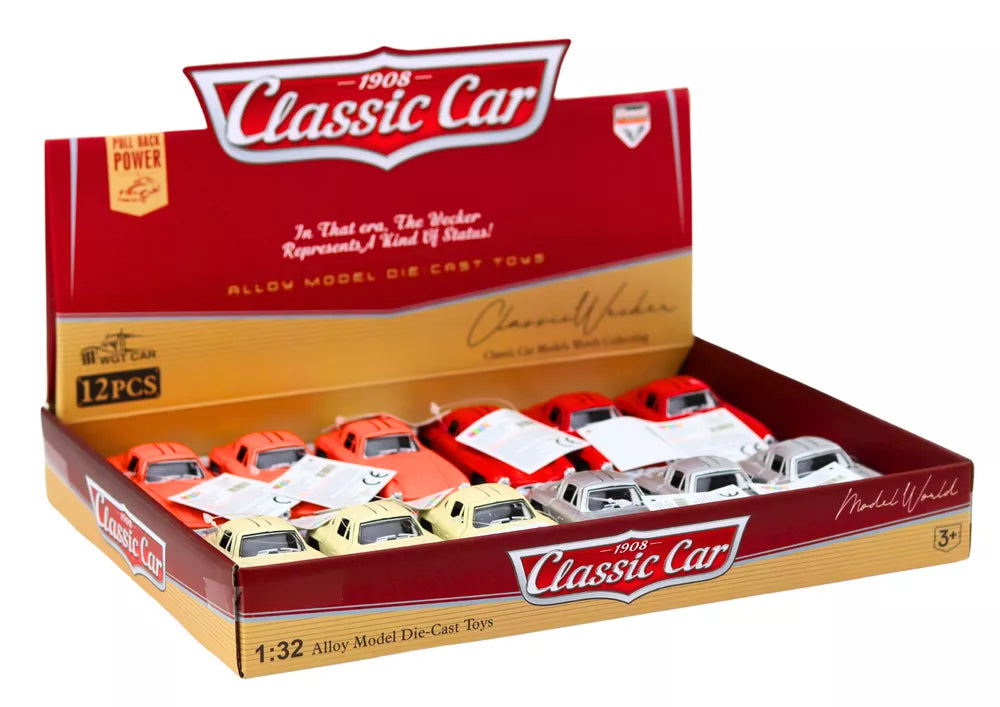 Klasikinis 1:32 mastelio automobilis yra tikras malonumas retro dvasia pasižymintiems automobilių mėgėjams. Puikiai atkurtas seno klasikinio automobilio modelis, pagamintas iš metalo, dvelkia autentiškumu ir solidumu. Jo detalės, pradedant išskirtinėmis linijomis ir baigiant kruopščia apdaila, traukia akį ir pabrėžia unikalų epochos stilių.