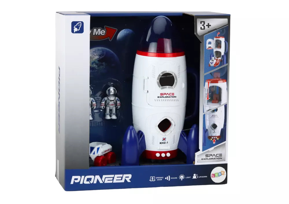 Raketa pagaminta iš patvarių medžiagų, užtikrinančių žaislo tvirtumą ir ilgaamžiškumą, net intensyviai žaidžiant. Jos tikslus dizainas ir kruopštus atlikimas daro ją idealiu pasirinkimu vaikams, kurie mėgsta kosmosą ir svajoja apie tarpžvaigždines keliones. Tai ne tik žaislas – tai vartai į nesibaigiančius kosmoso nuotykius ir atradimus, kurie sužadina vaizduotę ir įkvepia mažus tyrinėtojus dideliems svajonėms.