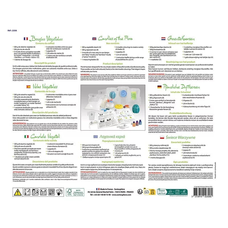Šis gamtos įkvėptas kvepiančių žvakių gamybos rinkinys kviečia pasinerti į magišką aromatų ir spalvų pasaulį. Lengvai ir sklandžiai pasigaminkite žvakes patys ir mėgaukitės ne tik nuostabiu kvapu, bet ir nepaprasta jų išvaizda.
