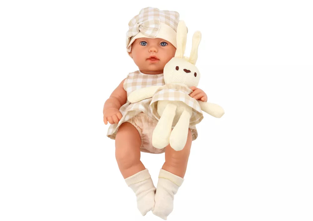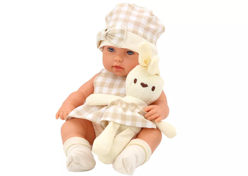 Lėlė su Nešyne Triušis Suknelė su Bežiniu Langeliu