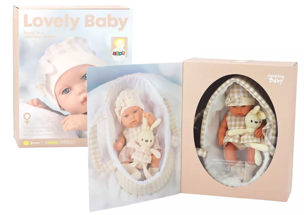 Lėlė nešynėje yra ypatingas žaislas, kuris nukelia vaikus į rūpestingumo ir globos pasaulį. Aprengta žavinga suknute su bežiniu-baltu langučiu, kepuryte su kaspinėliu ir kojinėmis, bei jaukiu pliušiniu triušeliu, lėlė atrodo nepaprastai žavingai ir kviečia žaisti.