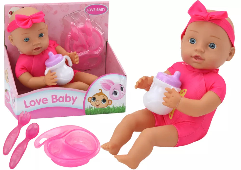 Lėlė Kūdikis Rausvi Drabužiai Lankelis Maitinimo Priedai