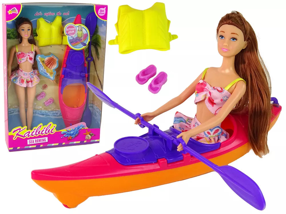 Šis rinkinys ne tik suteikia daug džiaugsmo, bet ir atveria duris į nesibaigiančias istorijas apie keliones vandeniu. Viduje rasite nuostabią lėlę, pasiruošusią bet kokiai vandens kelionei. Jos mielas, spalvingas maudymosi kostiumėlis suteikia vasariškos nuotaikos, o tamsūs plaukai žiba saulėje. Rožinės šlepetės suteikia žavesio visam aprangai. Svarbiausias rinkinio elementas – rožinė baidarė, kuri tikrai pritrauks dėmesį. Su judančiais elementais ir ratukais ji suteiks puikią patirtį atrandant naujas vietoves. Be to, jos uždarymas užtikrina saugias ir patrauklias pramogas. Pramogos tampa dar realesnės dėl geltonos gelbėjimosi liemenės, kuri užtikrina saugumą jūros nuotykių metu. Violetinis irklas leidžia išjudinti baidarę.