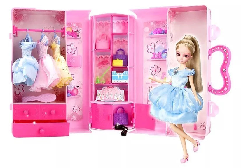 Pristatoma drabužių spinta yra puikus pasiūlymas mažoms mergaitėms, kurios mėgsta žaisti su lėlėmis arba stebėti savo mamą, kaip ji savimi rūpinasi, ir dabar ji gali daryti tai su savo lėle. Galite turėti drabužių spintą po ranka. Dėka užrakinamo lagamino ir rankenos, jūsų vaikas gali jį tiesiogine prasme pasiimti visur. Tai tikrai paįvairins žaidimą su bendraamžiais. Graži rožinė spalva su puikiu kiekvienos detalės atkūrimu leis jums jaustis kaip tikroje drabužių spintoje, apie kurią svajoja kiekviena maža mergaitė.