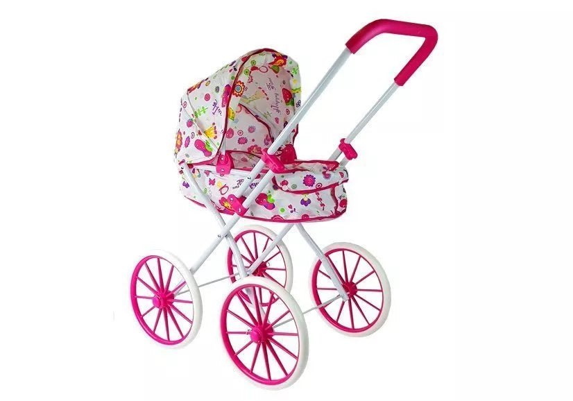 Fantastiškas, didelis ir manevringas vežimėlis jauniausiems mergaitėms. Modernus, akį traukiantis dizainas tikrai pradžiugins bet kurį mažąjį lėlių, meškiukų ir kitų minkštų žaislų prižiūrėtoją. Rožinės spalvos ir subtilių gėlių derinys sukuria tobulą duetą .