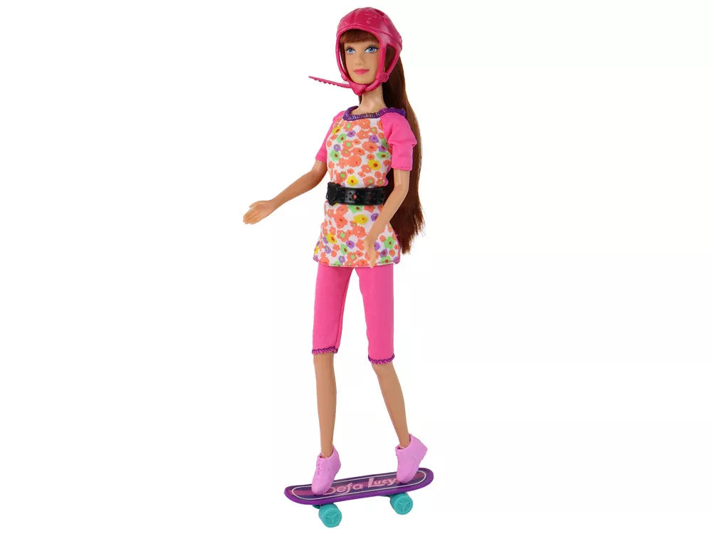 Lėlių rinkinys Lucy Rožinė Paspirtukas Riedlentė Šalmai