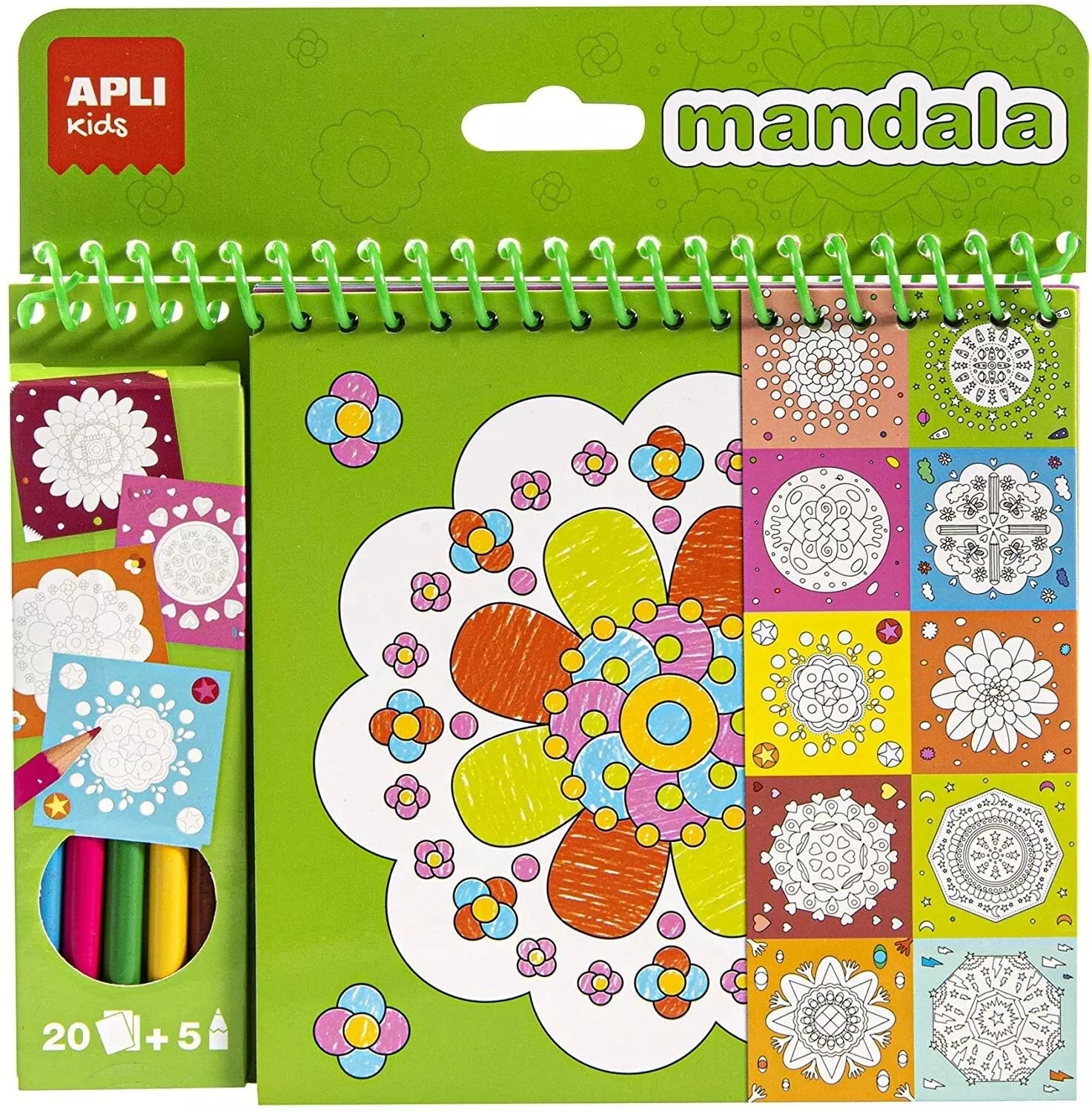 Mandalų spalvinimo knygelė su spalvotais pieštukais