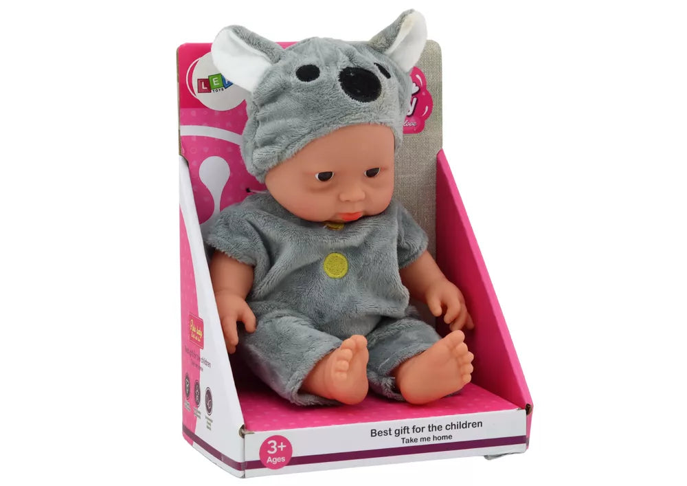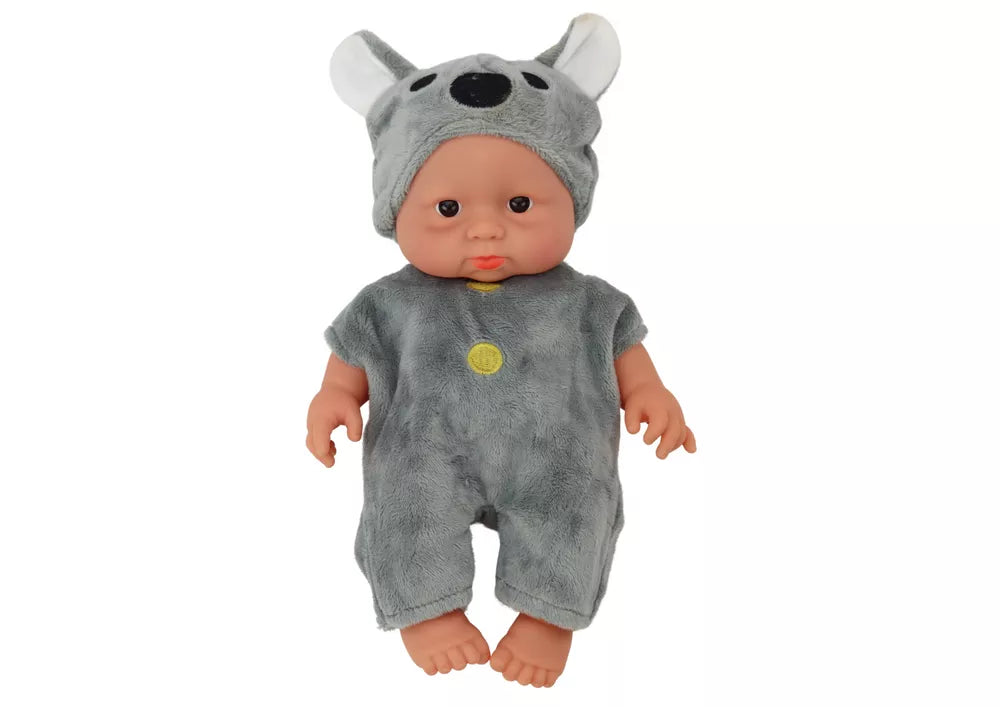 Maža kūdikio lėlė Pilki drabužiai Kepurėlė Koala