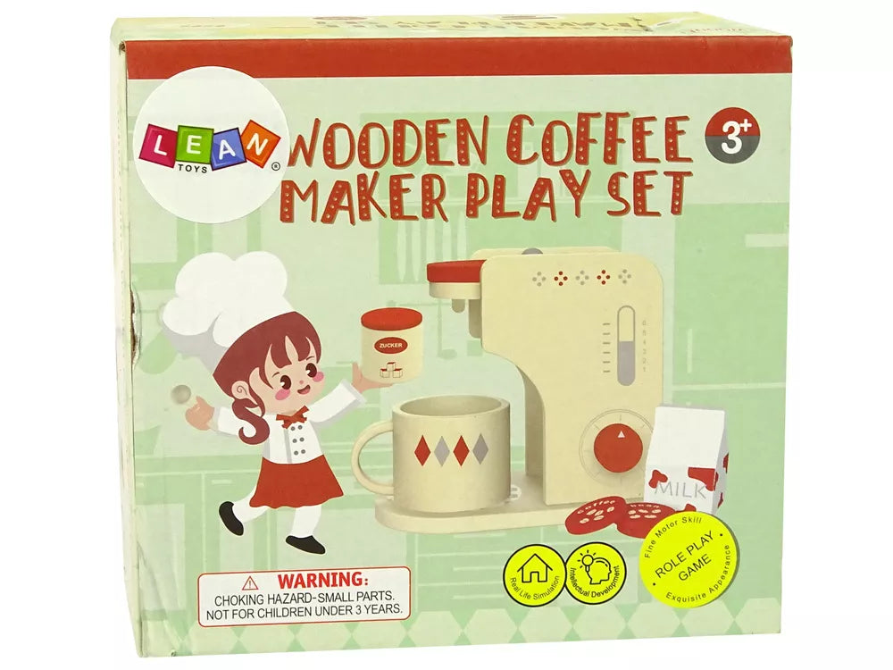 Rinkinys papildo vaikišką virtuvės įrangą ir suteikia vaikams galimybę žaisti vaidmeninius žaidimus. Kavos aparatas turi judančių dalių. Judančios rankenėlės padės lavinti sukibimą ir rankų darbo įgūdžius. Be to, komplekte yra puodelis, cukrus, pienas ir 3 rūšių mažos kapsulės, kurias reikia įdėti į kavos aparatą prieš verdant kavą. Tada naudodami ratukus nustatykite, kokią kavą pasirinks mažylis. Žaislas papildys virtuvės arba kavinės komplektą. Mažylis turės daugiau galimybių žaisti.
