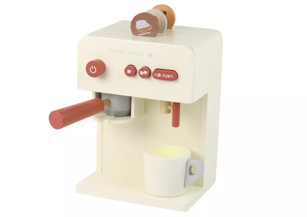Prie kavos virimo aparato pridedamas medinių priedų rinkinys, įskaitant puodelį, kavos kolbą ir 6 imitacines kavos kapsules. Tai leidžia vaikams žaisti visapusiškai ir kūrybiškai, kuriant savo kavinės scenarijus.