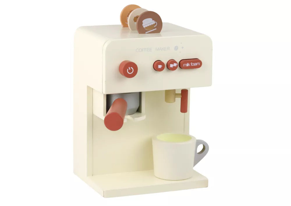 Kavos aparatas yra tikro kavos aparato imitacija, todėl vaikai gali pasijusti tikrais barmenais. Tikslios detalės, pavyzdžiui, rudos spalvos mygtukai, suteikia autentiškumo.