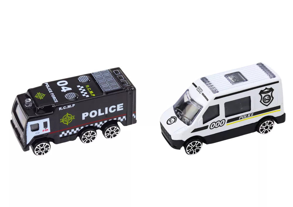 Rinkinyje yra du detalūs policijos automobiliai, kurie puikiai dera trasoje.