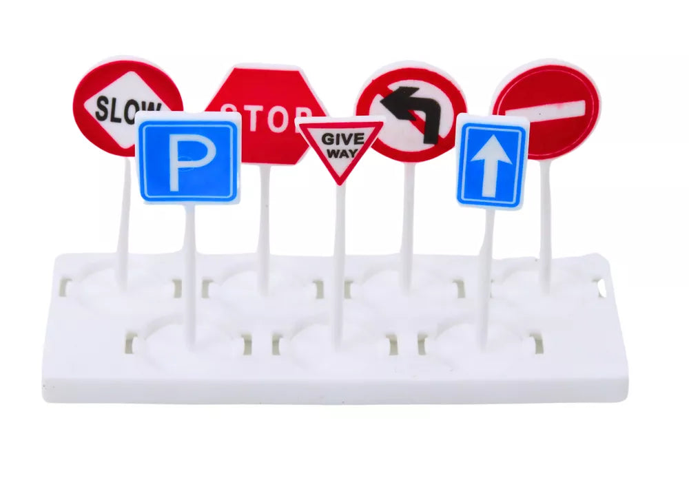 Rinkinyje yra kelio ženklai, leidžiantys kurti savo maršrutus ir lenktynių scenarijus.