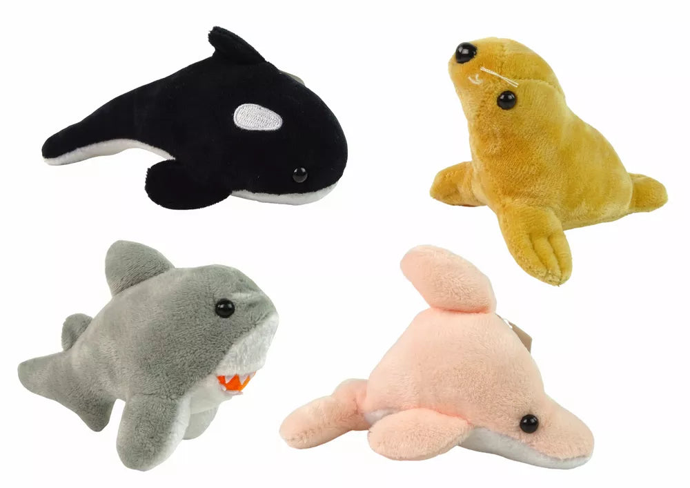 Kiekvienas iš keturių pliušinių modelių - ryklio, banginio, delfino ir ruonio - yra pagamintas kruopščiai, todėl atrodo tarsi iš pasakos. Ryklys turi savitus pelekus, kurie suteikia jam unikalią formą, o jo akys, žvelgiančios tiesiai į priekį, kupinos gyvybės. Banginis atrodo nepaprastai, jo juoda spalva ir didelės akys spinduliuoja smalsumą. Delfinas atrodo pasiruošęs šokti į bangas, o jo aptakus siluetas ir meistriškai suformuoti pelekai sukuria įspūdį, kad jis ką tik išniro iš vandens. Kita vertus, ruonis žavi baltais ūsais ir žaviu žvilgsniu.