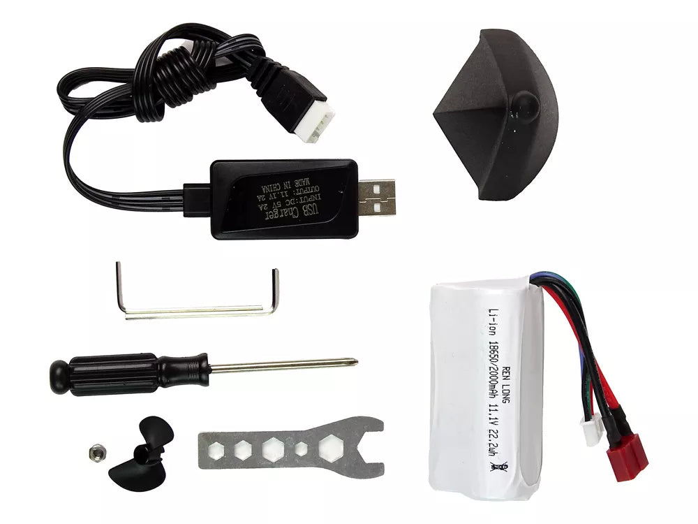 Su komplekte esančiu akumuliatoriumi ši motorinė valtis paruošta jaudinančiam pasivažinėjimui. Norėdami pradėti nuotykį, tiesiog nuimkite dangtelį nuo jo viršaus ir įdėkite jį. Kai varikliukas bus visiškai įjungtas, nuimkite jį ir atvėsinkite, kad jis veiktų optimaliai ir būtų naudojamas ilgai. Šis žaislas išvysto įspūdingą 35 km/h greitį, o jo veikimo trukmė - maždaug 10 minučių.