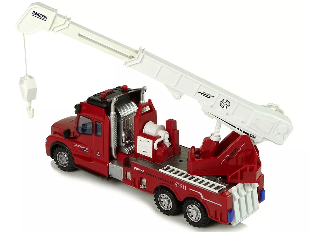 Dėl didelio dydžio ir ilgo, ištraukiamo krano (iki 34 cm + 10 cm papildomo siekio) jūsų vaikas gali imituoti tikrus gaisro gesinimo veiksmus, gesinti gaisrus, kelti krovinius ir gelbėti į pavojų patekusius žmones. Speciali rankenėlė transporto priemonės šone leidžia nuleisti virvės kablį, todėl žaidimas tampa dar tikroviškesnis.