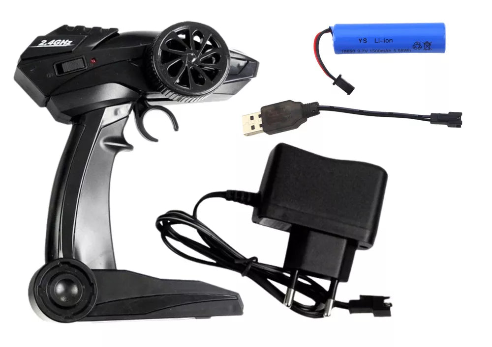 Šis aukso spalvos, baterijomis maitinamas radijo bangomis valdomas automobilis garantuoja naudotojui neįtikėtiną pramogą! Jis gali pasigirti daugybe funkcijų, kurių nėra kituose nuotoliniu būdu valdomų transporto priemonių modeliuose, pavyzdžiui, 4x4 pavara, amortizatoriais ir pasukimo funkcija. Automobilį maitina įkraunamų baterijų rinkinys, todėl žymiai sumažėja naujų baterijų įsigijimo ir automobilio priežiūros išlaidos. Automobilį valdo 2,4 GHz nuotolinio valdymo pultas, kuris užtikrina nuolatinį ryšį su transporto priemone.