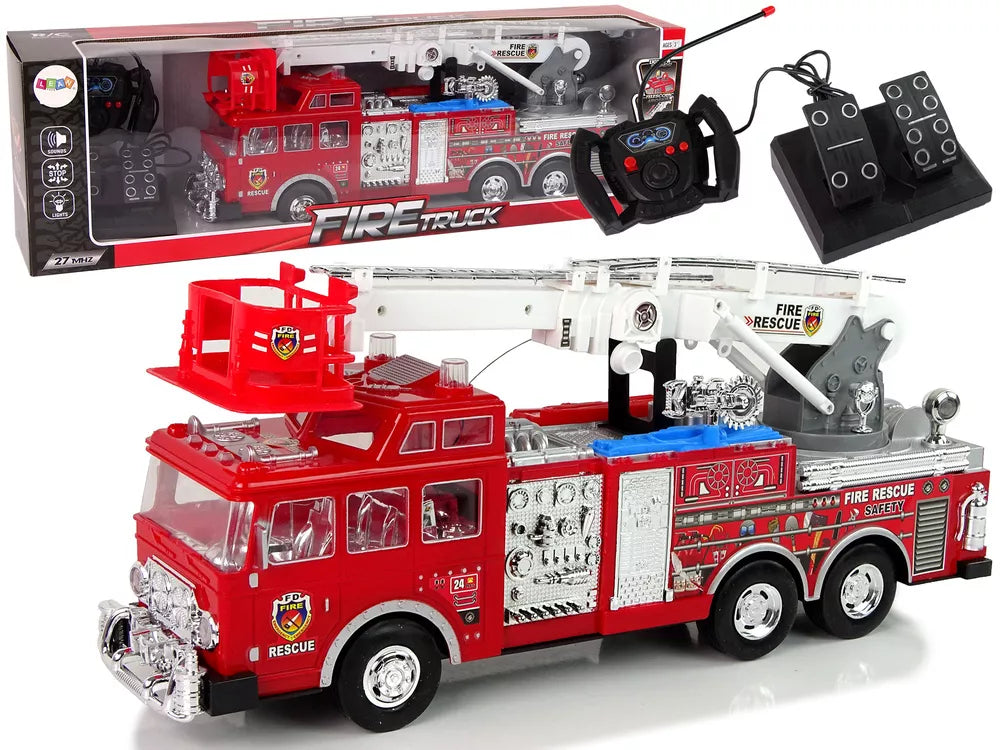 Nuotoliniu būdu valdomas gaisrinis automobilis yra realistiškai atkurtas modelis. Sidabriniai elementai ir ištraukiamos kopėčios - tai vienos iš šios transporto priemonės ypatybių. Žaisdamas mažasis tyrinėtojas sužinos apie ugniagesio profesiją.
