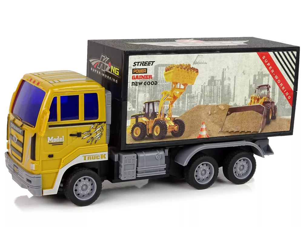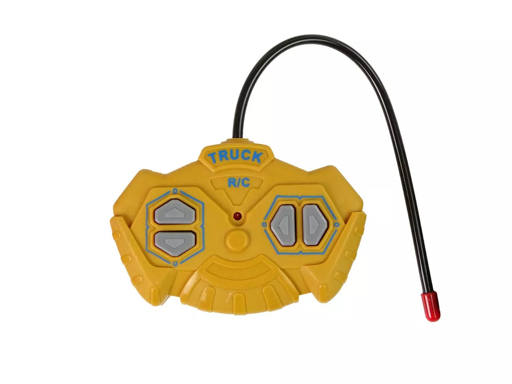 Nuotoliniu būdu valdoma statybinė transporto priemonė vaikams yra ant ratų su protektoriumi. Prie geltonos kabinos pritvirtinta juoda priekaba su išskirtiniais lipdukais, kuriuose pavaizduotos kitos statybinės mašinos. Nuotolinio valdymo pulto dažnis yra 27 Mhz. Nuotolinio valdymo pultelio valdymas yra labai paprastas, už nurodymus atsakingi keturi mygtukai. Sunkvežimio operatorius gali vairuoti sunkvežimį keisdamas kryptis pirmyn/atgal ir į dešinę/kairę. Be to, visas linksmybes lydi šviesos efektai.