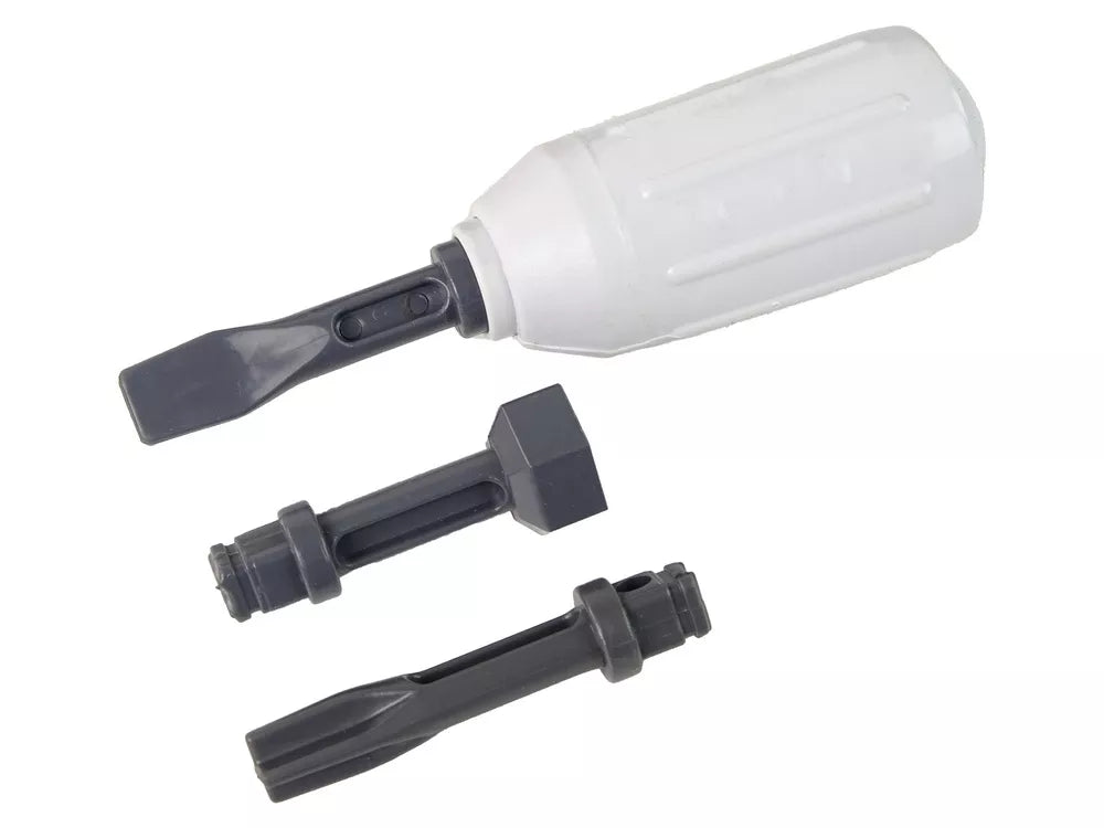 Rinkinyje taip pat yra atsuktuvas su dviem keičiamais antgaliais, kuriuo vaikai gali išardyti ir surinkti transporto priemonę. Tai puiki proga lavinti rankų darbo įgūdžius ir kūrybiškumą.