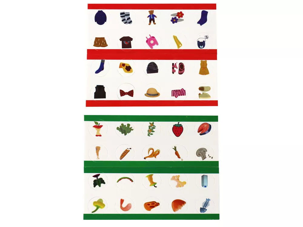 Rinkinyje rasite 2 šiukšlių konteinerius ir 4 paveikslėlių lenteles, kuriose pavaizduotos įvairių rūšių atliekos. Tai skatina vaikus smagiai ir prieinamai susipažinti su šiukšlių rūšiavimo taisyklėmis.