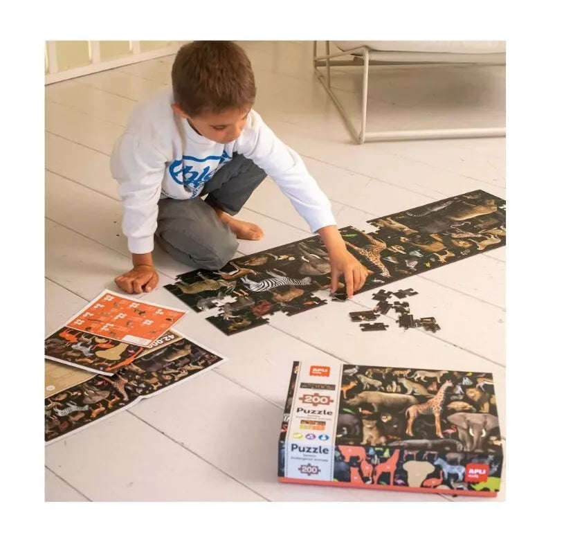 Sudėję visas 200 detalių, vaikai ne tik džiaugsis baigtu paveikslėliu, bet ir sužinos, kokios gyvūnų rūšys susiduria su išnykimo grėsme bei kodėl taip nutinka. Pridedamos informacinės kortelės pateikia faktus net 16 kalbų – tai puiki edukacinė priemonė visai šeimai ar klasei.