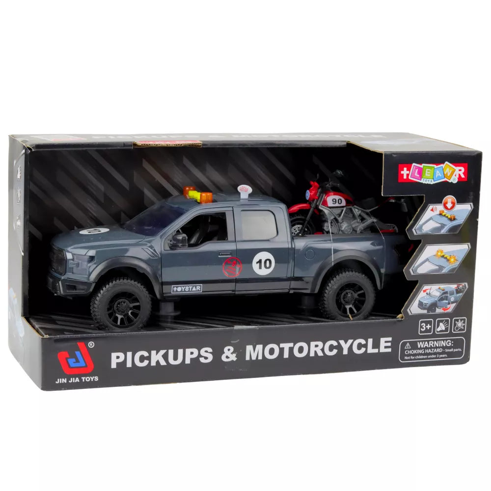 Didelis pikapo su motociklu modelis yra idealus žaislas vaikams, mėgstantiems visureigius, tikroviškas detales ir interaktyvius žaidimus. Transporto priemonė sukurta atsižvelgiant į jauniausius automobilių entuziastus, joje yra daugybė funkcijų, kurios praturtina žaidimą ir skatina vaizduotę. Automobilyje yra atidaromos durelės ir galinės durys, todėl į jį lengva pakrauti motociklą, o visam dizainui suteikiama autentiškumo. Galimybė įdėti ir išimti motociklą iš pikapo bagažinės leidžia kurti veiksmo scenarijus, gelbėjimo misijas ar bekelės lenktynes.