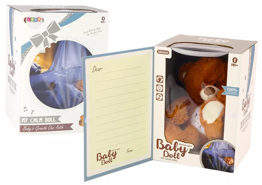 Pliušinis meškiukas miegantis Šviesos garsai Nakties ir dienos režimas Ruda