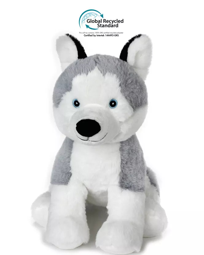 Švelnus ir labai minkštas pliušinis haskis, nuo letenėlės iki ausytės pagamintas iš perdirbtų medžiagų. Jis žvelgia dailiai išsiuvinėtomis akytėmis ir laukia apsikabinimų :)