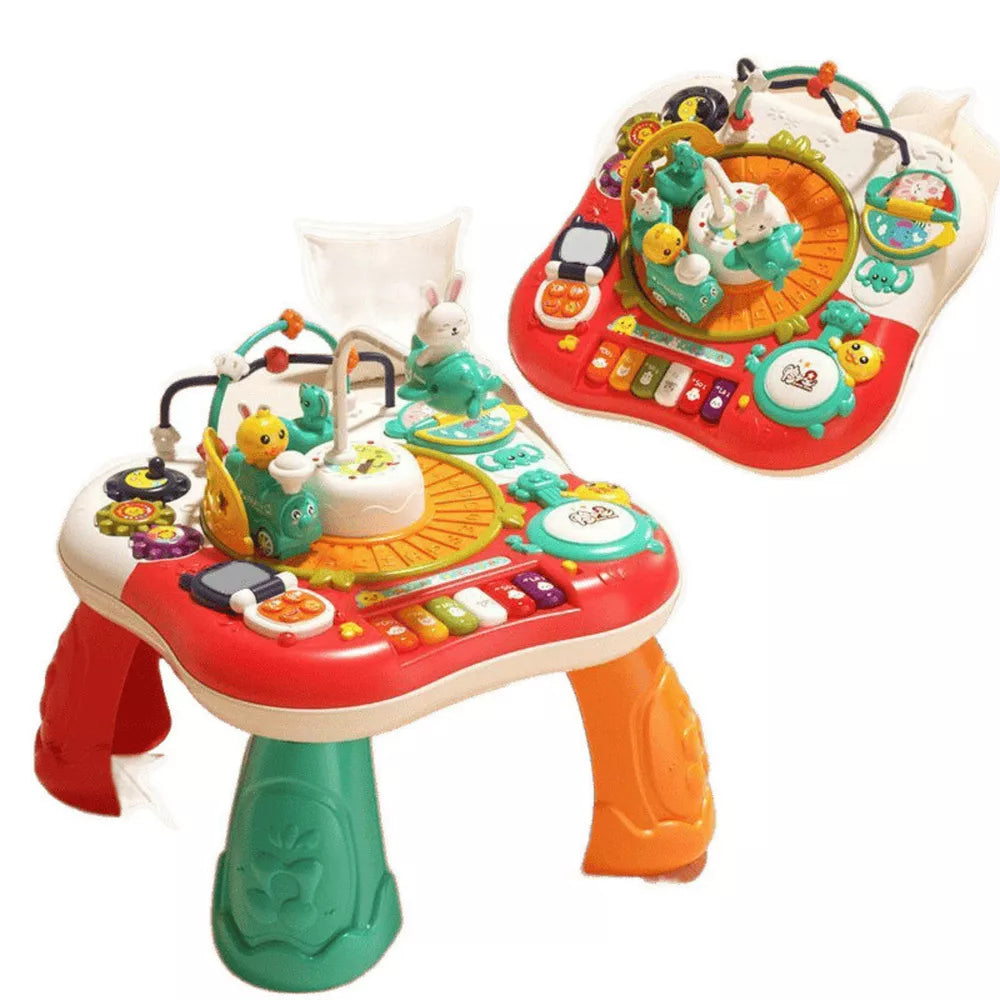 Interaktyvusis švietimo staliukas 2in1 yra daugiafunkcinis žaislas, kuris sujungia mokymąsi su linksma pramoga. Įrengtas pianinu, telefonu, sukamaisiais ratukais, krumpliaračiais, judančiais elementais ir šviečiančiais mygtukais, teikia vaikui įvairių stimulų, ugdančių pojūčius, vaizduotę ir rankų miklumą. Dėl plačios funkcijų įvairovės vaikas mokosi garsų, spalvų ir formų per žaidimą.
