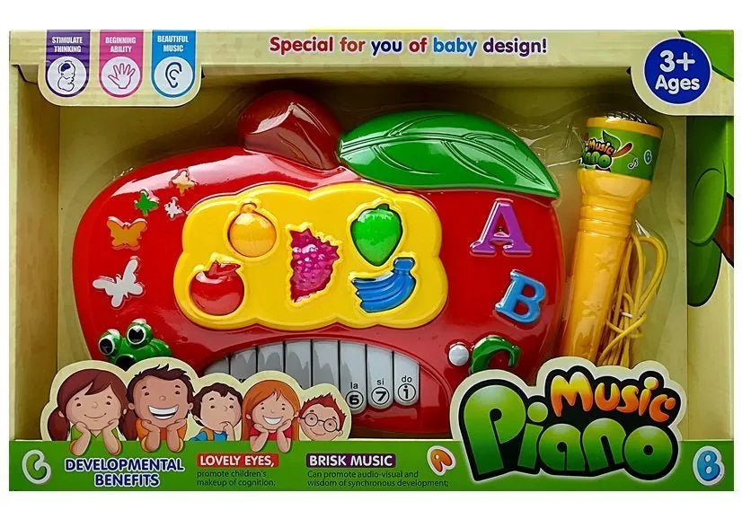 Interaktyvus pianinas vaikams, kuris puikiai tinka puikiam žaidimui dainuojant ir kurdami muziką. Papildomas rinkinio elementas yra mikrofonas. Pianinas turi funkciją prijungti prie jo įrenginį, pvz., telefoną ir grožėtis muzika. Žaislas labai kruopščiai pagamintas puikiais ryškiomis spalvomis, kurios skatina žaidimus. Elektroninis pianinas su mikrofonu privers mažąjį instrumentininką linksmai leistis į garsinę pramogą. Mes siūlome nuostabų muzikinį instrumentą, kuris padės kiekvienam vaikui išplėsti savo muzikalinius ir vokalinius gebėjimus. Dažniausiai per žaidimus vaikus galima paskatinti mokytis groti ar dainuoti.